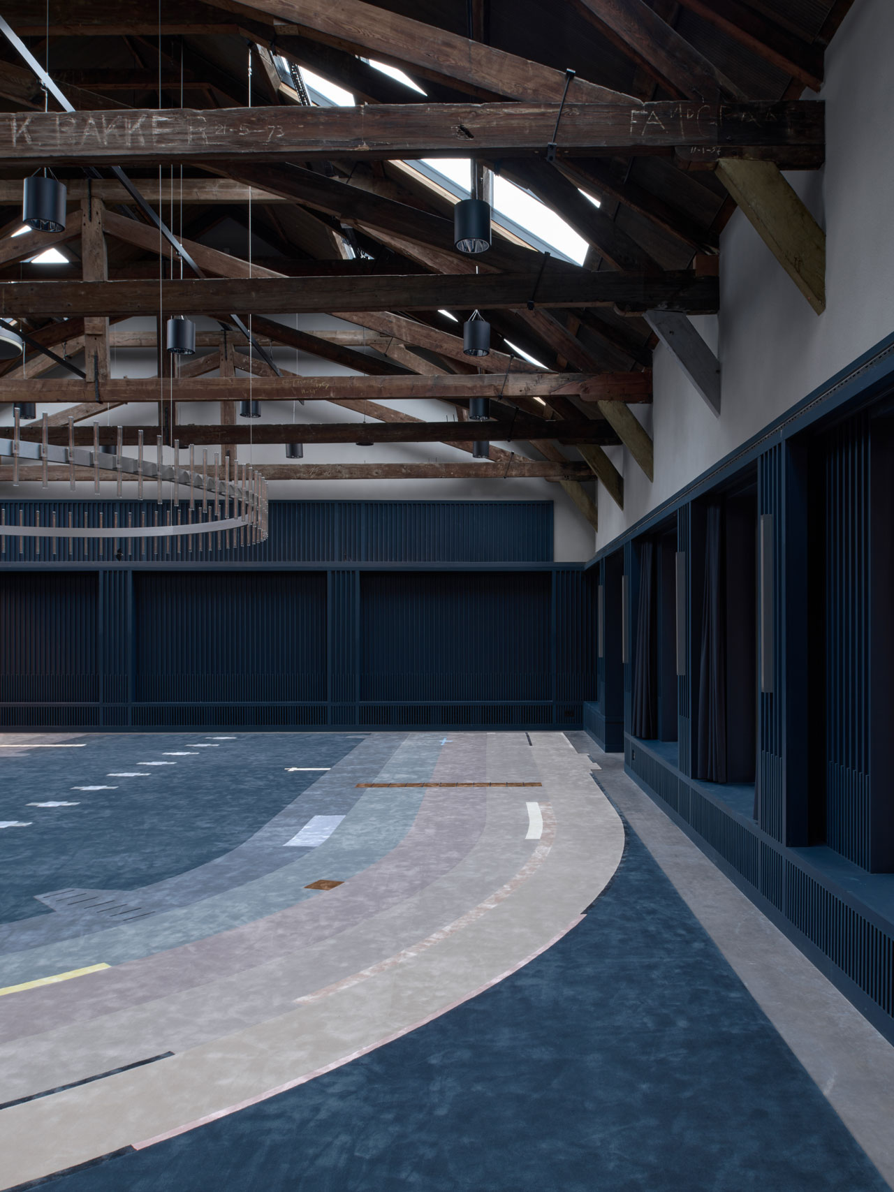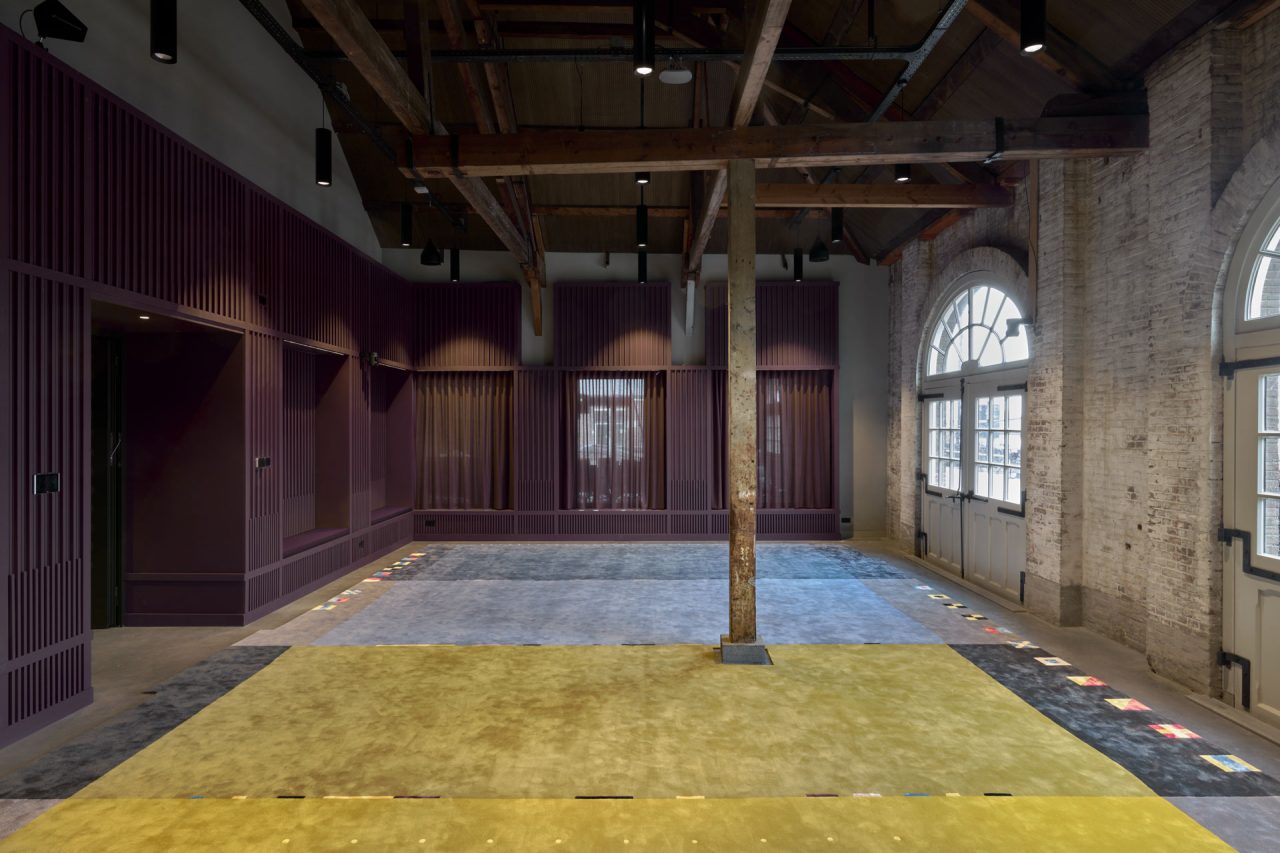 We had the honor and challenge to supply two huge free laying bespoke rugs for the City of Den Helder this month. Oliver Treutlein has a lot of experience with manufacturing big rugs and carpets for projects on land and water. Nonetheless, the council meeting room rug, hand tufted with 22 colors in finest New Zealand wool highlighted with ornaments in shiny bamboo silk with the size of 11,4 by 14,1 meter is one of the biggest one piece seamless rugs we ever did with its weight of 979 Kg. After the colors had been dyed which took 5 weeks the tufting, latexing, shearing and carving of the pieces took 14 weeks for our team to completion. We did not have any allowance speaking about time and sizes. We made it in time and the delivery took place as requested right before the new furniture arrived. After the summer holidays the representatives of the city will now work on an Oliver Treutlein carpet. And in the second beautiful historic hall we supplied weddings will take place. This is so exciting. We wish all the future couples good luck for the common future. They will say “yes” with our carpet under their feet and a view to the old marine base. We are grateful and so happy that we have been in involved into this very special project by the designer Edith van Berkel and the Gemeente Ten Helder. It was an honor to bring Ediths ideas to the floor. She has so well managed to create that matching carpet design with the beautiful historic building and related it with the maritime history of Den Helder.